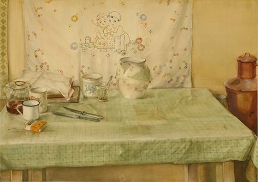 Balogh Gyula: Konyhaasztal (akvarell, papír, 69X96,5 cm) 1980.